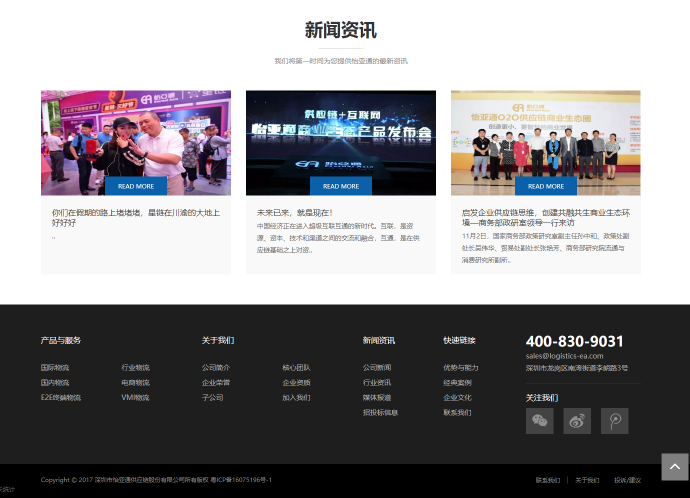 怡亞通集團(tuán)旗下物流公司官網(wǎng)交由卓越邁創(chuàng)網(wǎng)站建設(shè)公司開發(fā),已經(jīng)完成正式上線對外發(fā)布。怡亞通物流是國內(nèi)物流供應(yīng)鏈領(lǐng)導(dǎo)企業(yè),2011-2015年由《財(cái)富》雜志公布榮獲中國500強(qiáng)之一榮譽(yù),以及國家高新技術(shù)企業(yè)和中國最佳雇主稱號。怡亞通與卓越邁創(chuàng)是年度合作關(guān)系,我司為其提供網(wǎng)站建設(shè)及推廣工作,服務(wù)水平獲得高層領(lǐng)導(dǎo)的贊賞。怡亞通為2000多家國內(nèi)外知名企業(yè)提供專業(yè)的供應(yīng)鏈解決方案,以卓越的服務(wù)和創(chuàng)新的商業(yè)模式引領(lǐng)中國供應(yīng)鏈服務(wù)行業(yè)發(fā)展,獲得了社會各界的認(rèn)可。我相信,在未來與卓越邁創(chuàng)的合作下,怡亞通物流線上品牌推廣會做得越來越好。
